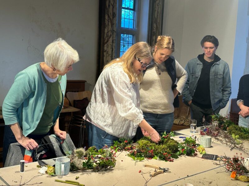 A SOLD OUT workshop -Gardener and Florist Melanie Penning welcomed guests with a walk round the Asthall Manor garden and then into our ballroom and to show everyone how to make a beautiful centrepiece for their Christmas table or door, using foraged abundance from the hedgerow. The workshop was about connecting with nature and each other, calmness, gentleness and the enormous reward we get from being creative and preparing for the special time of year. A very successful and enjoyable event with some beautiful arrangements.